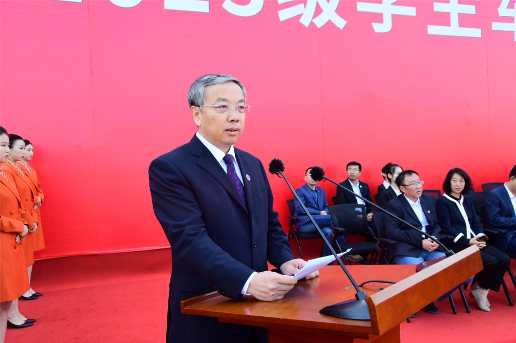 学校相关部门负责人、各学院党政负责人、全体学工干部及2023级全体新生等6000余人参加大会。